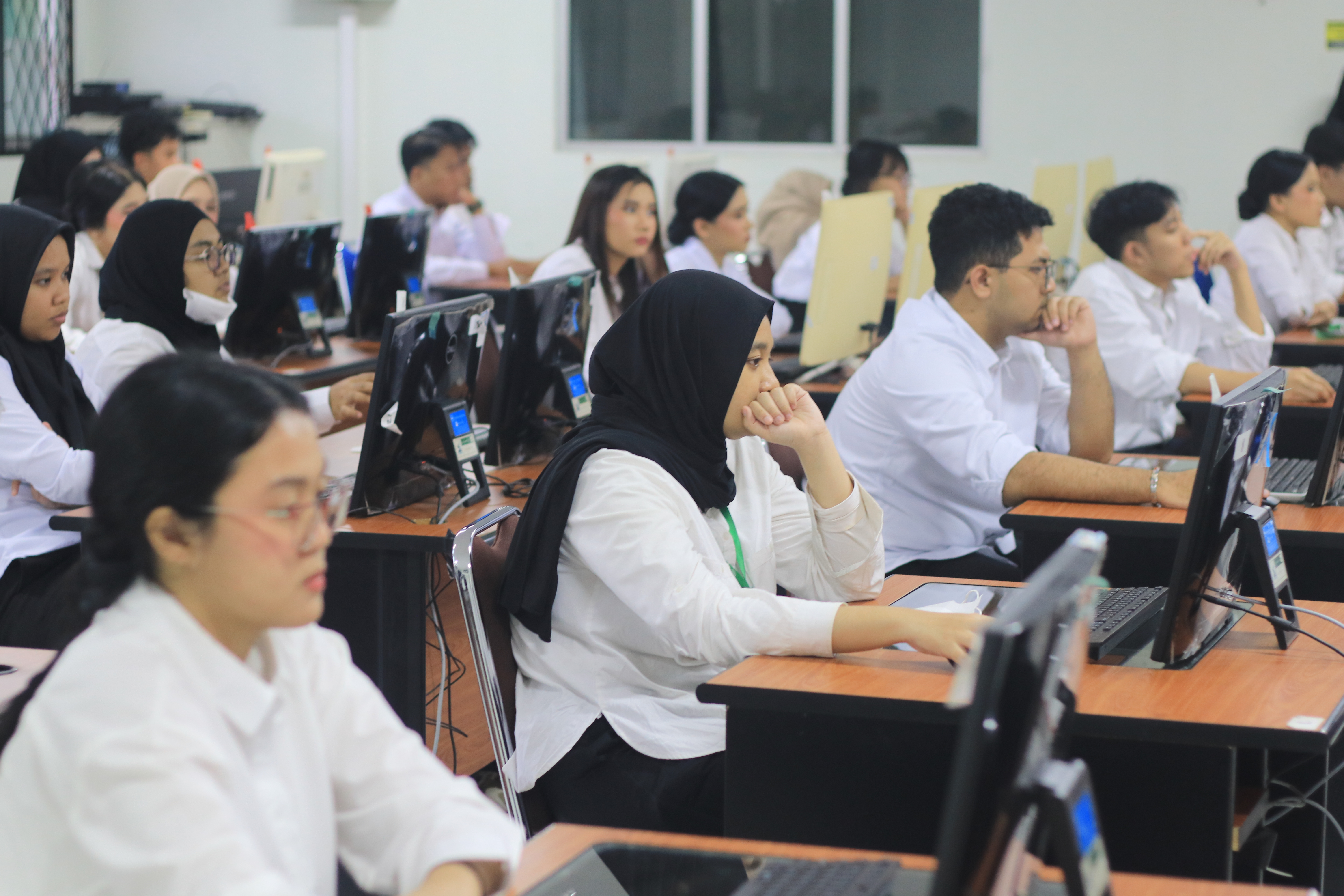 FK UPNVJ – Sebanyak 186 mahasiswa koas Fakultas Kedokteran Universitas Pembangunan Nasional Veteran Jakarta (UPNVJ) mengikuti ujian Clinical Foundation Course (CFC) berbasis Computer Based Test (CBT), Jumat (6/2/2026). Ujian dilaksanakan serentak di tiga lokasi, yakni Lantai 4 CBT Center, Lantai 1 Laboratorium Komputer Gedung Cipto Mangunkusumo FK UPNVJ, serta Lantai 2 Laboratorium Terpadu Gedung Perpustakaan UPNVJ. Pelaksanaan ujian ini menjadi tahapan penting untuk memastikan kesiapan mahasiswa sebelum memasuki fase klinik secara penuh.