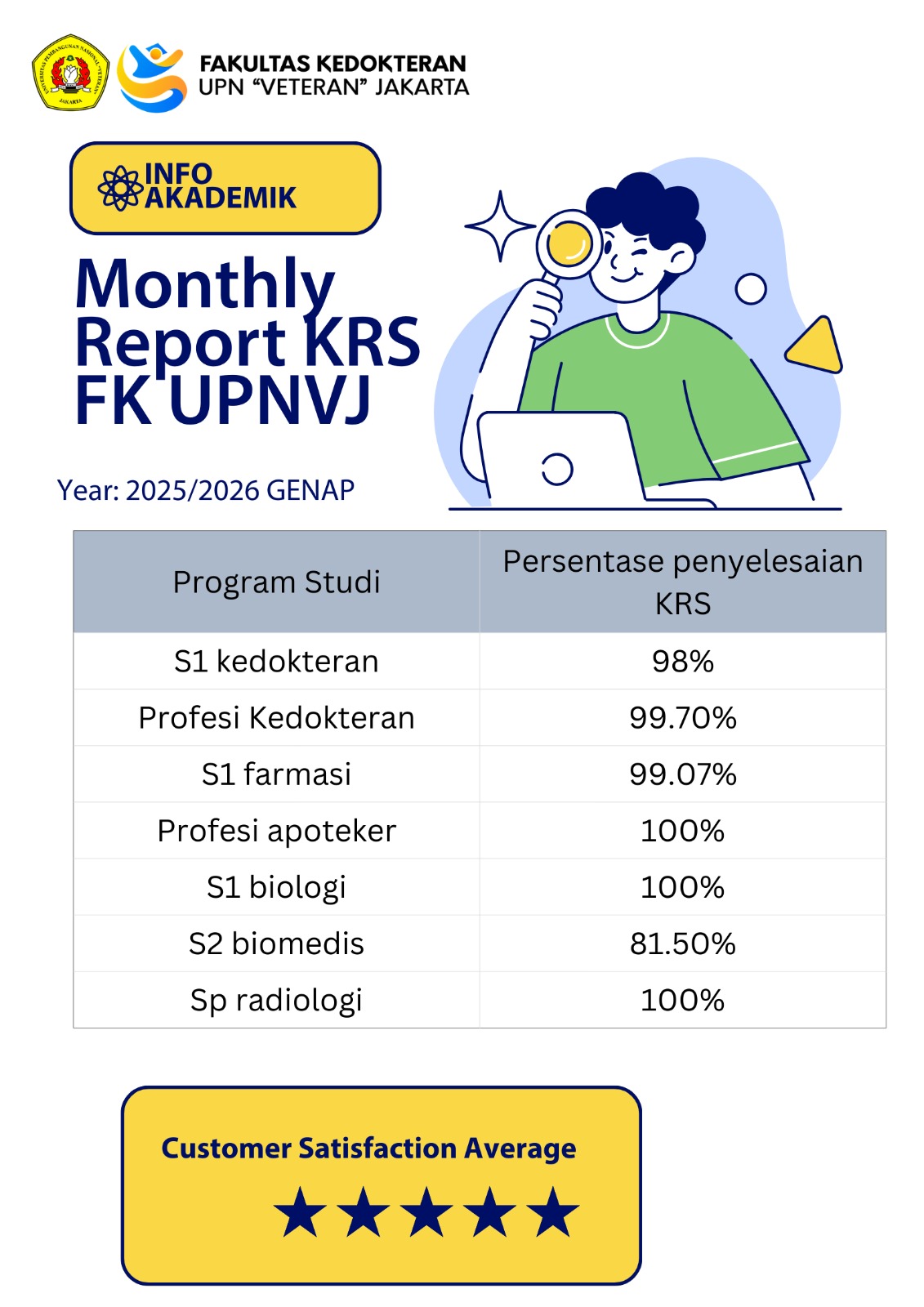 Fakultas Kedokteran UPN “Veteran” Jakarta terus berkomitmen dalam meningkatkan kualitas layanan akademik melalui pemantauan rutin proses administrasi mahasiswa. Salah satu indikator penting yang dievaluasi secara berkala adalah tingkat penyelesaian...