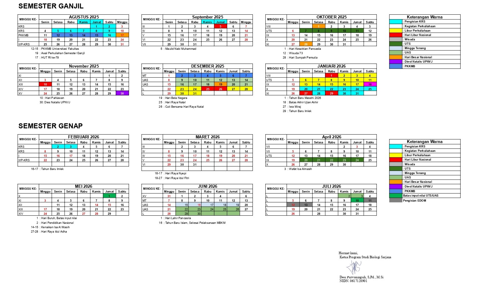 KALENDER AKADEMIK TA.2025/2026PROGRAM STUDI BIOLOGI PROGRAM SARJANAFAKULTAS KEDOKTERAN UPN “VETERAN” JAKARTA