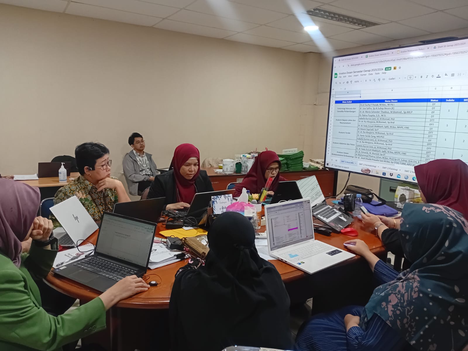 Selanjutnya, Program Studi Sarjana Farmasi difokuskan pada penempatan dosen dan SKS, pembimbing skripsi, pelaksanaan Magang Berdampak, serta kesiapan dokumen dan administrasi pendukung. Program Studi Pendidikan Profesi Apoteker membahas pelaksanaan PKKMB, rotasi wahana, monitoring evaluasi, dan penguatan absensi wahana. Program Studi Radiologi menyoroti kelengkapan data SIMPENJAMU, seminar proposal, sistem absensi serta penilaian, penyusunan rubrik penilaian, dan tindak lanjut kerja sama wahana. Program Studi Sarjana Kedokteran membahas penyempurnaan kurikulum, pengaturan jadwal skripsi, seminar proposal dan hasil, serta evaluasi mahasiswa angkatan 2023 ke atas. Koordinasi diakhiri dengan perumusan kesimpulan dan penetapan rencana tindak lanjut.
