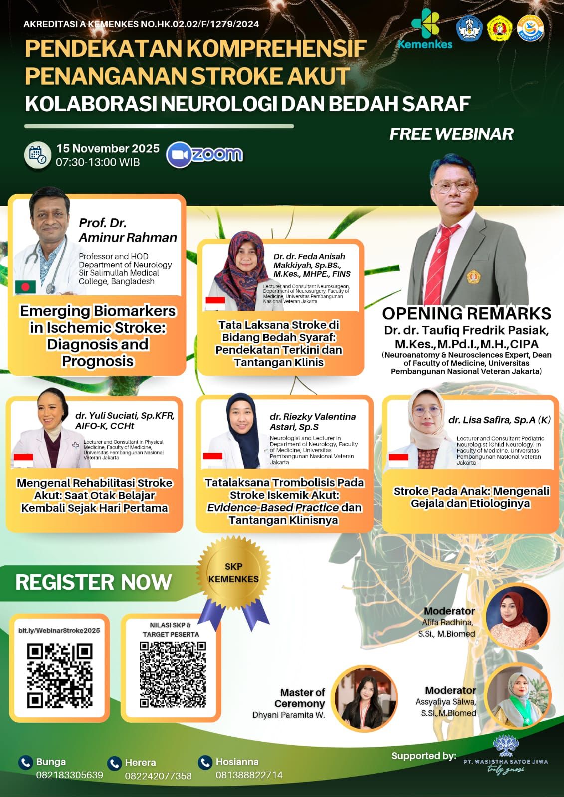 Fakultas Kedokteran Universitas Pembangunan Nasional Veteran Jakarta pada: 🗓 Selasa, 28 Oktober 2025 🕣 Pukul 08.00 – 12:00WIB 🏛 Zoom Meeting MC & Moderator – Ichwan Baihaki, A.Md.A.K.,S.Si.,M.Biomed (Dept....