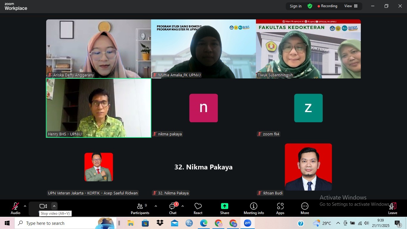 FK UPNVJ – Fakultas Kedokteran UPN “Veteran” Jakarta menyelenggarakan rapat koordinasi daring pada Jumat, 21 November 2025. Rapat ini dipimpin oleh Wakil Dekan Bidang Akademik Fakultas Kedokteran Dr. dr. Feda Anisah Makkiyah, Sp.BS, M.Kes dan dihadiri oleh Wakil Rektor Bidang Akademik Dr. Henry Binsar Hamonangan Sitorus., S.T., M.T. serta pimpinan Unit Informasi Teknologi UPN “Veteran” Jakarta Asep Saeful Ridwan, S.Kom.