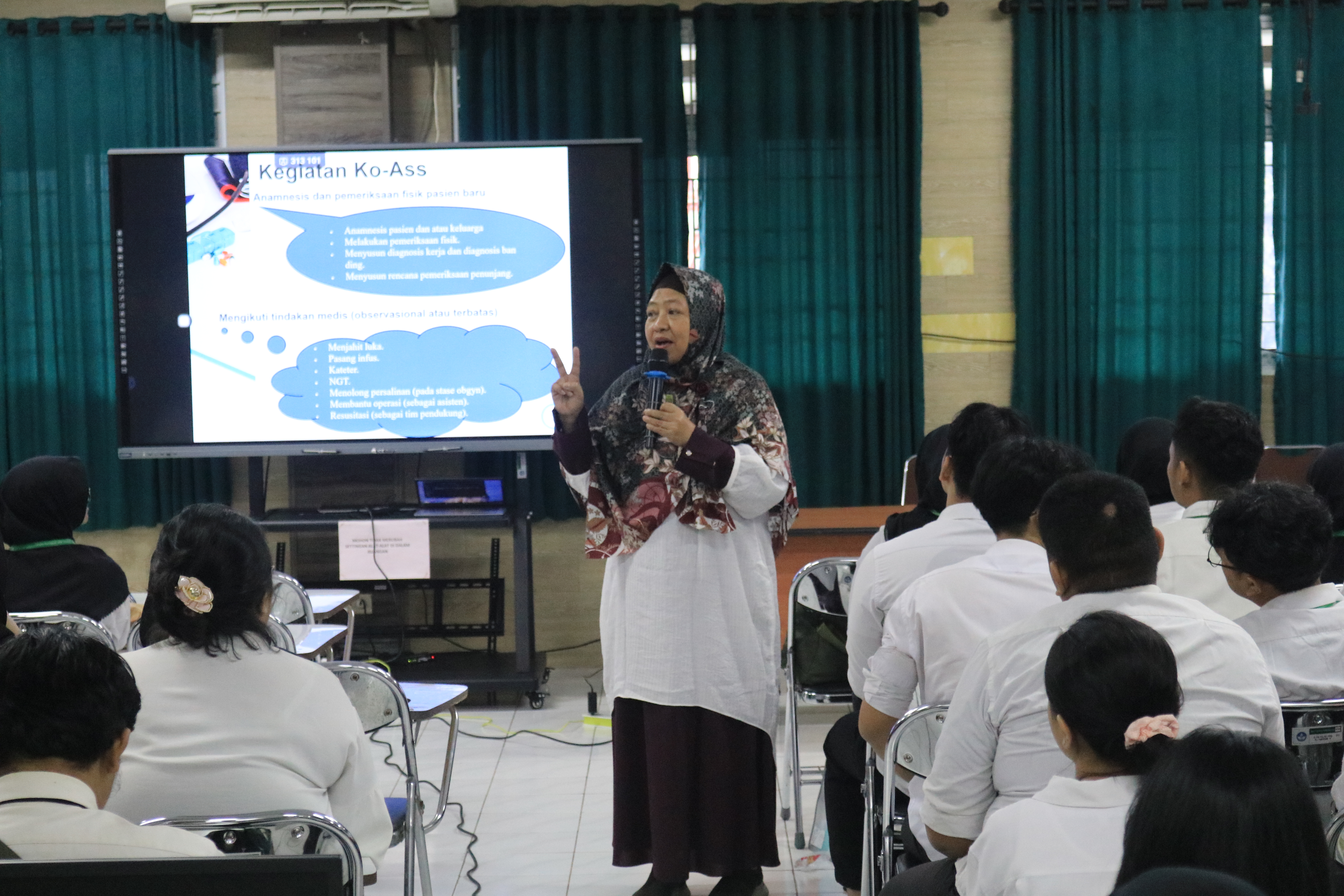 Materi dalam kegiatan CFC juga disampaikan oleh Ketua Program Studi Pendidikan Profesi Dokter, dr. Mila Citrawati, M.Biomed., Sp.KKLP., Wakil Dekan Bidang Umum dan Keuangan, dr. Sri Wahyuningsih, M.Kes., Sp.KKLP., Wakil Dekan Bidang Kemahasiswaan dan Kerja Sama, dr. Erna Harfiani, M.Si., serta dr. Hikmah Muktamiroh, M.Med.Ed., Sp.KKLP., Subsp. COPC. Para narasumber memberikan pembekalan terkait sistem pendidikan profesi dokter, peran mahasiswa dalam pembelajaran klinik, penguatan kompetensi profesional, pengembangan soft skills, serta nilai-nilai etika dan komunikasi dalam praktik kedokteran.