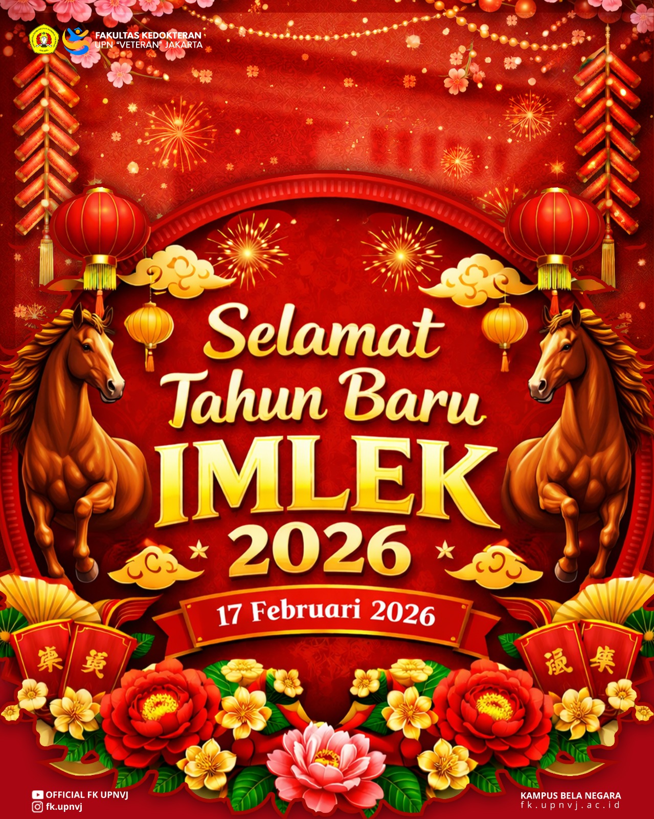 FK UPNVJ – Segenap pimpinan dan civitas akademika Fakultas Kedokteran Universitas Pembangunan Nasional “Veteran” Jakarta (UPNVJ) mengucapkan Selamat Tahun Baru Imlek 2026.
