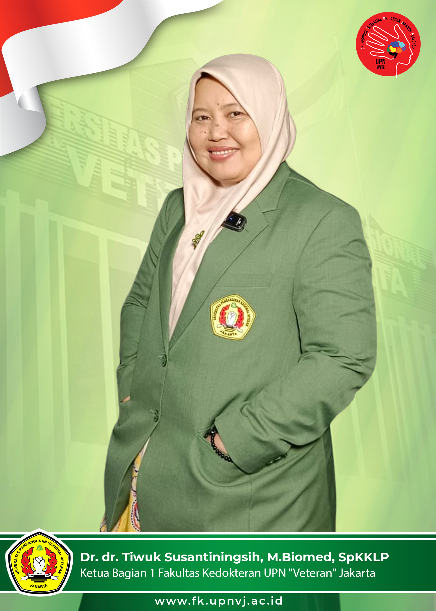 Struktur Dekanat Fakultas Kedokteran Dekan Fakultas Kedokteran UPN Veteran Jakarta LHKPN Wakil Dekan Bidang Akademik LHKPN Wakil Dekan Bidang Umum dan Keuangan LHKPN Wakil Dekan Bidang Kemahasiswaan dan Kerjasama LHKPN Ketua Bagian Fakultas Kedokteran Ketua Bagian 1 Fakultas Kedokteran Ketua Bagian 2 Fakultas Kedokteran Struktur Ketua Program Studi Fakultas Kedokteran Ketua Program Studi Kedokteran Program Sarjana (PSKPS) Program Studi Pendidikan Profesi Dokter Program Profesi (PSPPDPP) Ketua Program Studi Farmasi Program Sarjana (PSFPS) Ketua Program Studi Sains Biomedis Program Magister (PSSBPM) Ketua Program Studi Radiologi Program Spesialis (PSRPS) Ketua Program Studi Biologi Program Sarjana (PSBPS) Struktur Kepala Laboratorium Program Studi Kedokteran Program Sarjana (PSKPS) Ka. Lab. Pat. Klinik Ka. Lab. Ilmu Kesehatan Masyarakat (IKM) Ka. Lab. Biologi Ka. Lab Biokimia Ka. Lab. Farmakologi/Farmasi Ka. Lab. Stem Cell Ka. Lab. Anatomi Ka. Lab. Ilmu Gizi Ka. Lab. Ilmu Faal/Fisiologi Ka. Lab. Mikrobiologi Ka. Lab. Parasitologi Ka. Lab. Matra Ka. Lab. Histologi Ka. Lab. Patologi Anatomi Ka. Lab. Patologi Klinik Struktur Kepala Laboratorium Program Study Farmasi Program Sarjana (PSFPS) Ka. Lab. Teknologi Farmasi Ka. Lab. Analis Instrumen Ka.Lab Farmakologi dan Farmasi Klinik Ka. Lab. Biologi Farmasi Halaman ini merupakan halaman dinamis, sewaktu-waktu informasi dapat berubah.