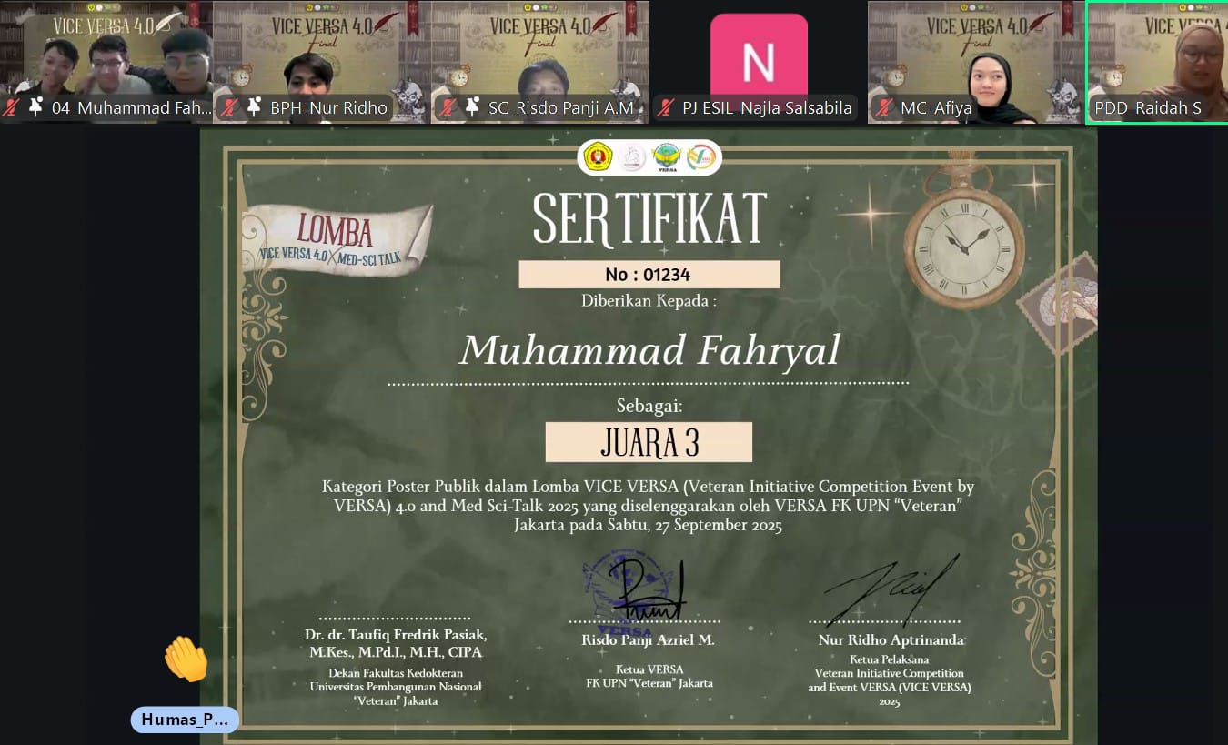 Tim FK UPNVJ Raih Juara Pertama E-Poster Competition di Ajang Internasional AAPCHS x PIT HBTKVI 2025